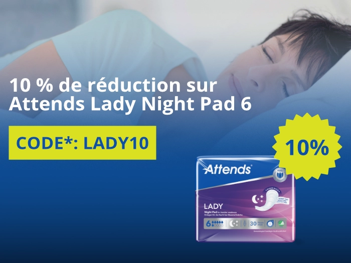 Vous trouverez ici une sélection de produits pour l’incontinence de haute qualité et tout ce dont vous avez besoin pour les soins aux personnes âgées. Bien entendu, nous répondrons à toutes vos questions concernant les commandes et serons heureux de vous conseiller individuellement.