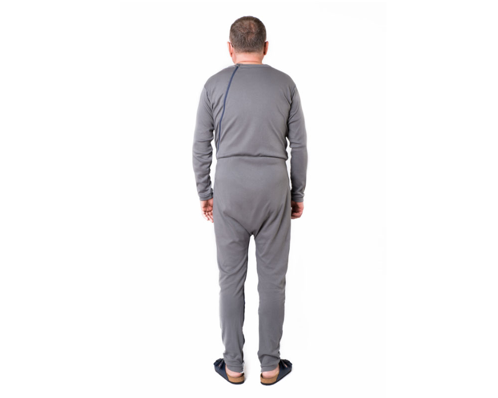 ActivePro Grenouillère en gris vous aide à prendre soin de vos proches ou de vos résidents, ainsi que des patients atteints de démence. Elle est extrêmement confortable et de haute qualité. La fermeture éclair au niveau des jambes vous soulage lorsque vous changez de protection d'incontinence. La fermeture éclair au dos vous permet d'accéder rapidement à la partie supérieure du corps. Comme la fermeture éclair à la jambe possède une sécurité supplémentaire, il est difficile de se déshabiller seul.
