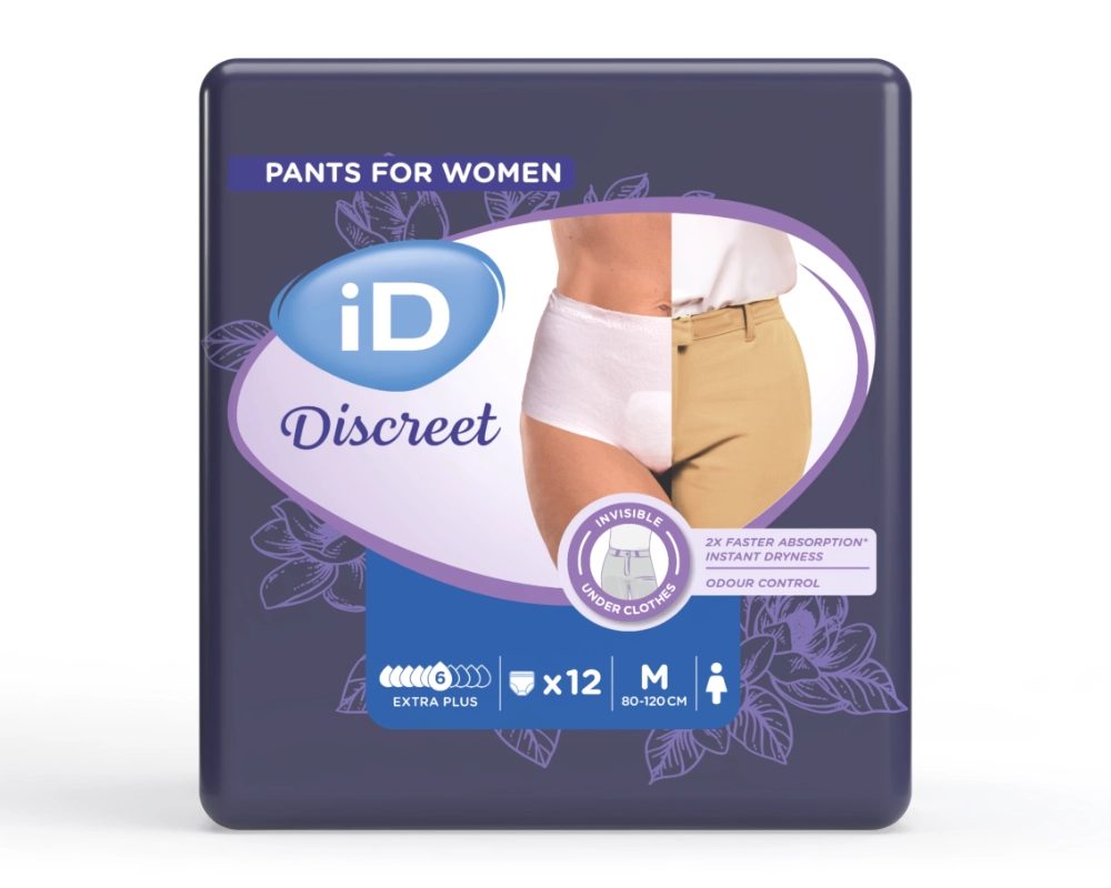 Remarque : Les iD Intime Pants Plus portent désormais le nouveau nom : iD Discreet Pants for Woman Extra Plus. Le produit a été modifié – nouveau design d’emballage, capacité d’absorption légèrement ajustée et tour de hanches modifié. Des livraisons mixtes peuvent actuellement survenir.