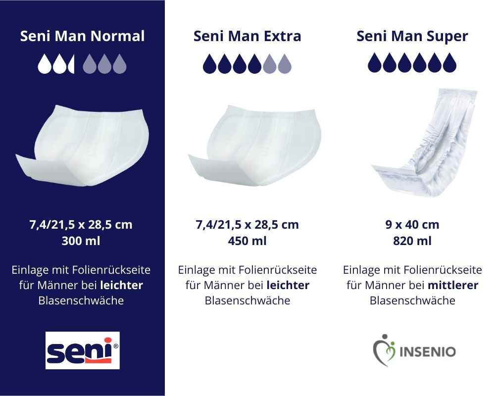 Le Seni Man Normal est une protection spécialement conçue pour les hommes. La forme triangulaire offre une protection particulièrement sûre contre les fuites de liquide. Cette coquille est donc idéale pour les hommes qui misent sur la discrétion, la sécurité et le confort. Grâce à une large bande adhésive, la coquille peut être facilement fixée dans les sous-vêtements. La coquille garantit une adaptation optimale à l'anatomie masculine. En même temps, Seni Homme Normal minimise les odeurs désagréables et absorbe les liquides immédiatement et de manière fiable. Une protection contre les fuites latérales garantit une sécurité supplémentaire.