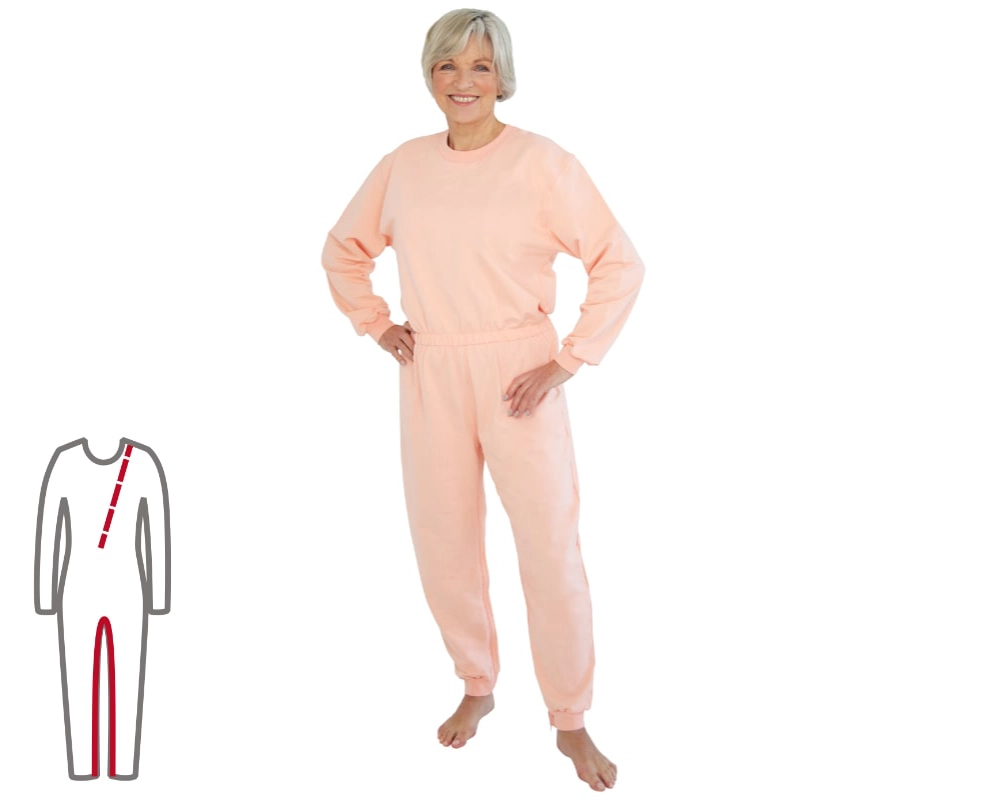 Der ActivePro Pflegeoverall für Frauen – Apricot ist ein funktionaler Damenoverall für Tag und Nacht. Er wird besonders für die Pflege von Menschen mit Demenz oder Alzheimer empfohlen. Durch die integrierten Sicherheitsverschlüsse an den Beinreißverschlüssen wird ein unbeabsichtigtes An- oder Auskleiden verhindert. Zudem erschwert der Overall den Zugang zu Inkontinenzmaterial – für mehr Sicherheit und Würde im Pflegealltag.