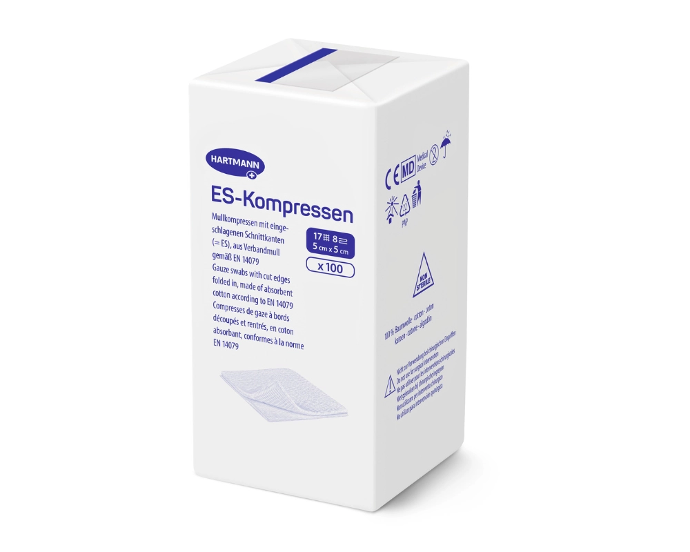 Hartmann ES-Kompressen unsteril sind ein bewährter Klassiker in der allgemeinen Wundversorgung. Sie eignen sich besonders zur Erstversorgung von verschmutzten, infizierten und stark nässenden Wunden. Darüber hinaus werden sie als Tupfer sowie als Kompressen bei kleineren operativen Eingriffen in der Ambulanz und im stationären Bereich eingesetzt. Auch in der Dekubitusversorgung finden ES-Kompressen vielseitige Anwendung. Die Kompressen sind in verschiedenen Abmessungen erhältlich.