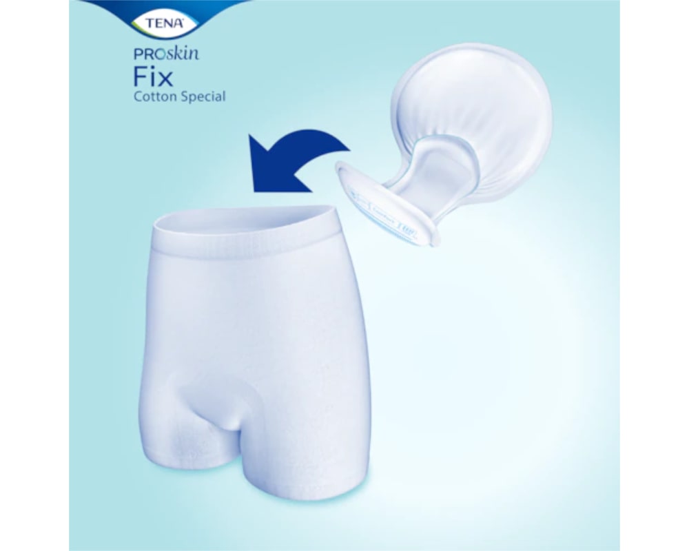 TENA Fix Cotton Special ist eine nahtlose Fixierhose und Unterwäsche in einem. Sie wird in Kombination mit einer Vorlage getragen. Dank des hohen Baumwollanteils ist TENA Fix Cotton Special besonders für Menschen mit empfindlicher Haut geeignet. Sie bietet den Komfort und die diskrete Optik normaler Unterwäsche und ist für Männer und Frauen gleichermaßen geeignet.