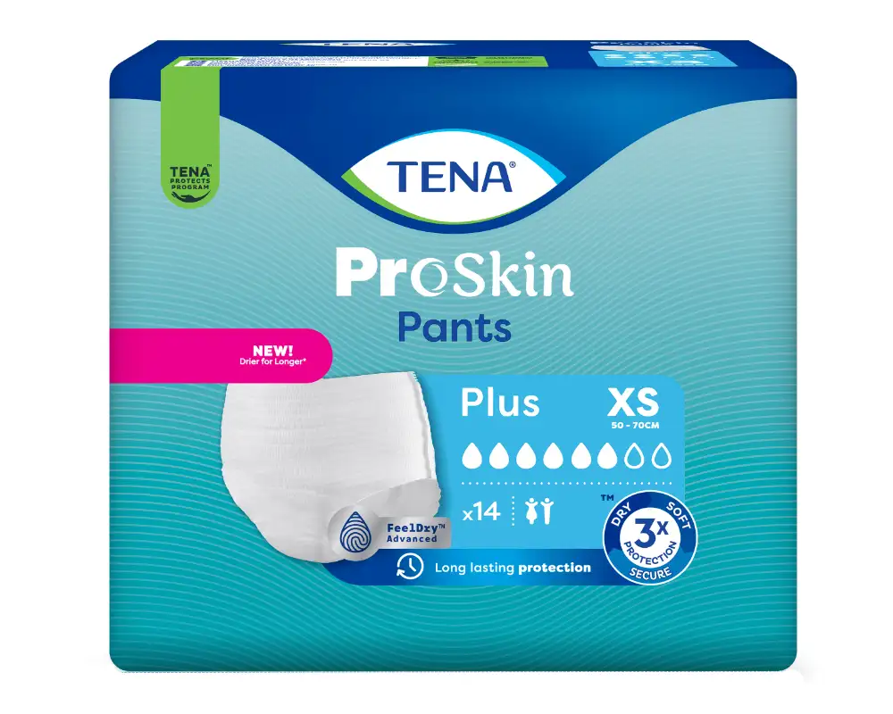 Besonders unterwegs sind die TENA Pants Plus eine diskrete, zuverlässige Lösung. Die atmungsaktive Außenfolie fühlt sich angenehm textil an und hilft, Hautirritationen zu vermeiden. Die integrierte Odour Control neutralisiert zuverlässig unangenehme Gerüche. Dank der FeelDry-Technologie wird Flüssigkeit schnell aufgenommen, sicher im Saugkern eingeschlossen und selbst unter Druck zurückgehalten. So bleibt die Haut angenehm trocken – für ein langanhaltendes Gefühl von Sicherheit und Komfort.