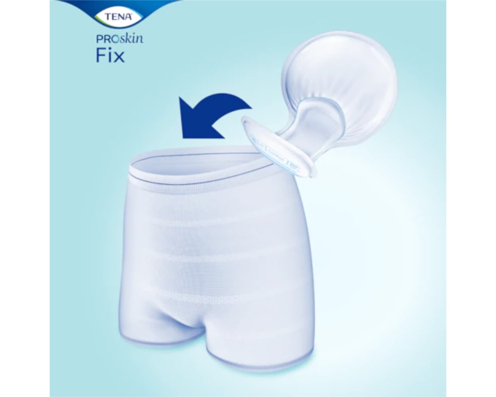 Die TENA ProSkin Fix ist eine waschbare, wiederverwendbare Fixierhose zur sicheren Fixierung von Inkontinenzvorlagen aller Art. Sie überzeugt durch eine hervorragende Passform, hohen Tragekomfort und einfache Handhabung. Dank des nahtlosen Designs werden Druckstellen zuverlässig vermieden – die Hose lässt sich angenehm wie herkömmliche Unterwäsche tragen. TENA Fix ist formstabil und bleibt auch nach bis zu 50 Wäschen elastisch und passgenau.