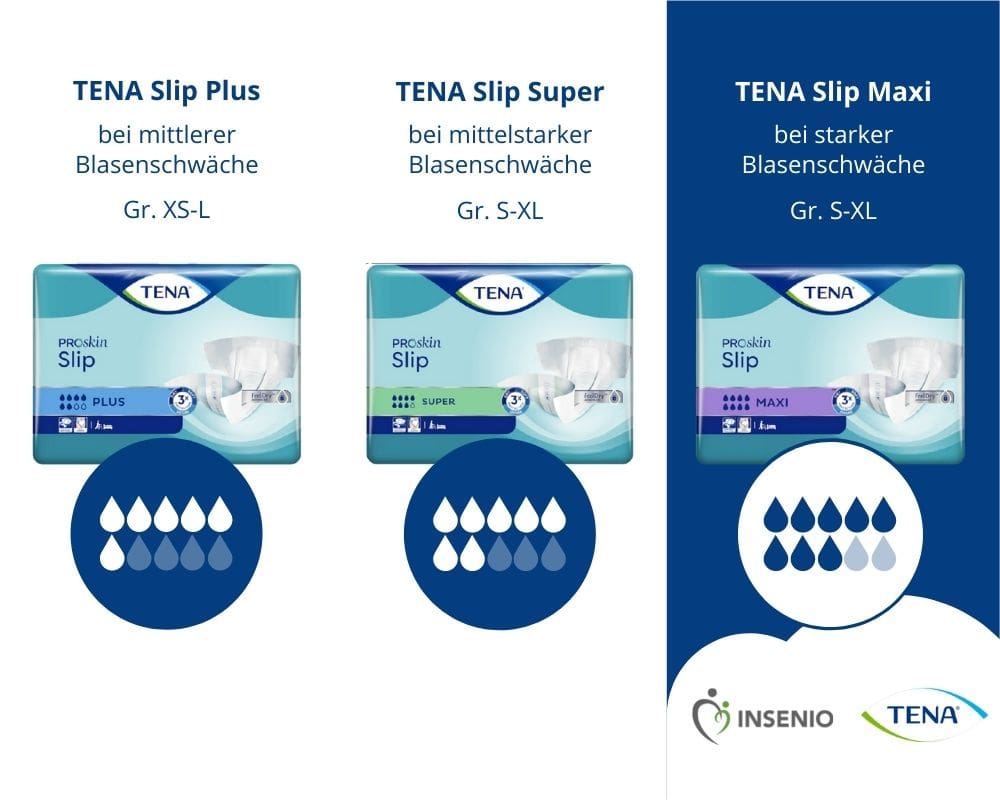 Ein praktisches Detail: Der integrierte Nässeindikator auf der Außenseite verfärbt sich von Gelb zu Blau, sobald ein Wechsel erforderlich ist – ganz ohne die Windel zu öffnen. Aufgrund ihrer hohen Saugleistung ist die TENA Slip Maxi besonders für die Nachtversorgung geeignet.